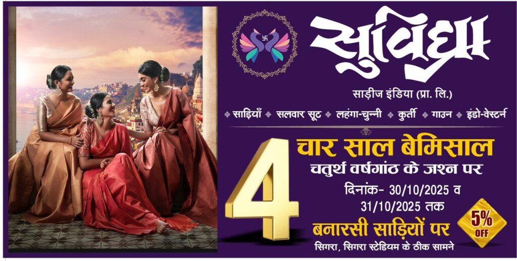 इसी आभार के रूप में हमने यह विशेष छूट देने का निर्णय लिया है, ताकि हर ग्राहक हमारे साथ इस खुशी को साझा कर सके।’ शेवारमानी ने बताया कि पिछले चार वर्षों में सुविधा साड़ी इंडिया प्रा. लि. ने वाराणसी की फैशन दुनिया में अपनी अलग पहचान बनाई है। उच्च गुणवत्ता, आधुनिक डिजाइन और ग्राहक संतुष्टि ही इसकी सफलता के प्रमुख कारण हैं।
