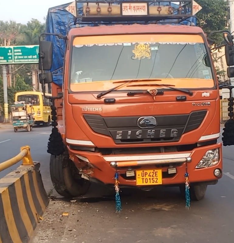 वाराणसी। थाना लालपुर पांडेयपुर क्षेत्र के खजूरी तिराहे स्थित पेट्रोल पंप के सामने आज रात्रि 3:30 बजे एक लोडेड आयसर ट्रक अनियंत्रित होकर डिवाइडर से टकरा गया।चालक अरुण कुमार, निवासी अयोध्या, ने बताया कि वह पंजाब से बनारस टायर लेकर चौकाघाट जा रहा था। रास्ते में एक ट्रक को बचाने के प्रयास में उसकी गाड़ी डिवाइडर से टकरा गई। टक्कर के बाद ट्रक का स्टीयरिंग फेल, कमानी टूट गई और बायां शीशा क्षतिग्रस्त हो गया।ट्रक मालिक उमाशंकर पाल, निवासी फैजाबाद, को सूचना दे दी गई है। यदि समय रहते गाड़ी को नहीं हटाया गया तो जाम की स्थिति उत्पन्न हो सकती है।