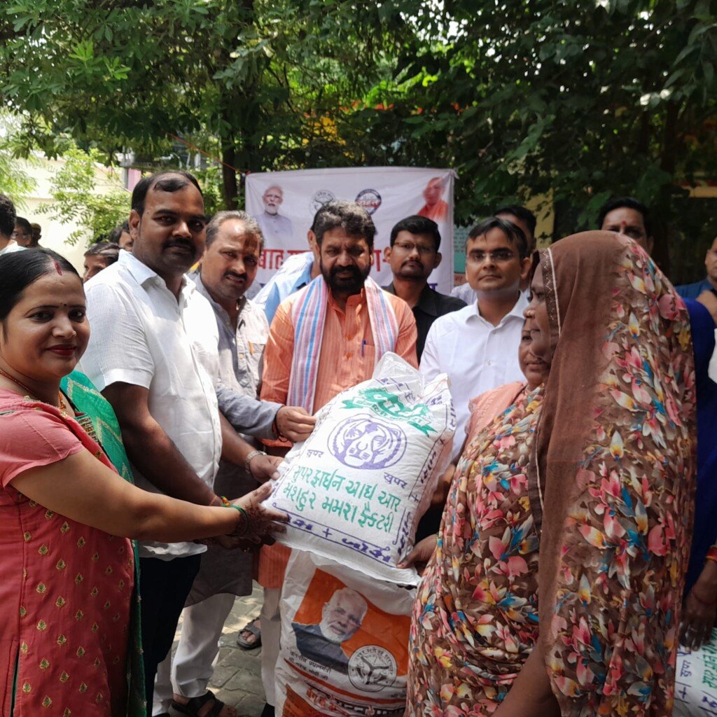 मंत्री रविंद्र जायसवाल ने सिकरौल में लोगों को दिए राहत सामग्री