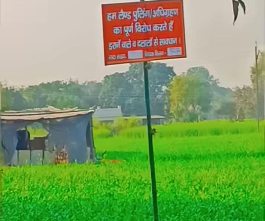 गंजारी और हरसोस के किसान जमीन अधिग्रहण के विरोध में लामबंद, खेतों में लगे विरोध के पोस्टर