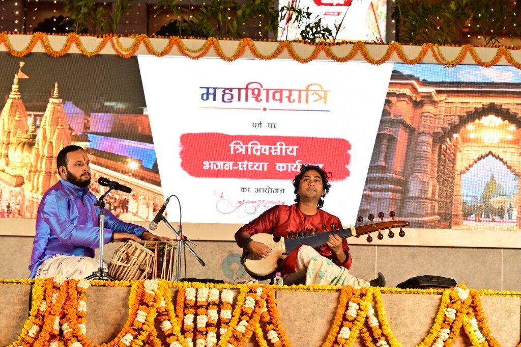 कार्यक्रम का शुभारंभ सुप्रसिद्ध कलाकार अंशुमान महाराज द्वारा सरोद वादन से हुआ। उनकी मधुर और साधनापूर्ण प्रस्तुति ने वातावरण को पूरी तरह शिवमय बना दिया। सरोद की मधुर धुनों ने उपस्थित श्रद्धालुओं को आध्यात्मिक अनुभूति का एहसास कराया।