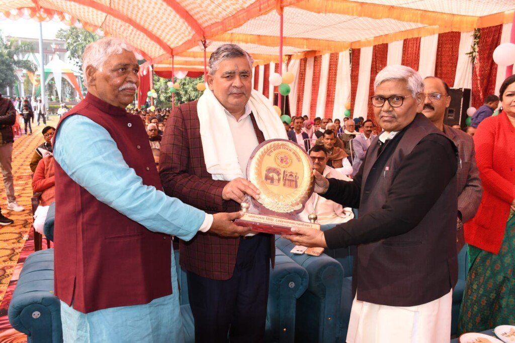 वाराणसी। महात्मा गांधी काशी विद्यापीठ के कुलपति प्रो. आनन्द कुमार त्यागी को लोकनाथ महाविद्यालय, रामगढ़, चंदौली में रविवार को सम्मानित किया गया। कुलपति प्रो. त्यागी को स्वतंत्रता सेनानी लोकनाथ सिंह की पुण्यतिथि पर आयोजित कार्यक्रम में बतौर मुख्य अतिथि उपस्थित रहे। इस दौरान एम.ए. उर्दू के शीर्ष-10 में 07 स्थान प्राप्त करने वाले महाविद्यालय के छात्र-छात्राओं को कुलपति प्रो. त्यागी एवं परीक्षा नियंत्रक दीप्ति मिश्रा द्वारा सम्मानित किया गया। इसके पहल कुलपति प्रो. त्यागी संत ने कीनाराम मंदिर में जा कर दर्शन किया। इस अवसर पर कुलानुशासक प्रो. के.के. सिंहऔर परीक्षा नियंत्रक श्रीमति दीप्ति मिश्रा आदि उपस्थित रहे।