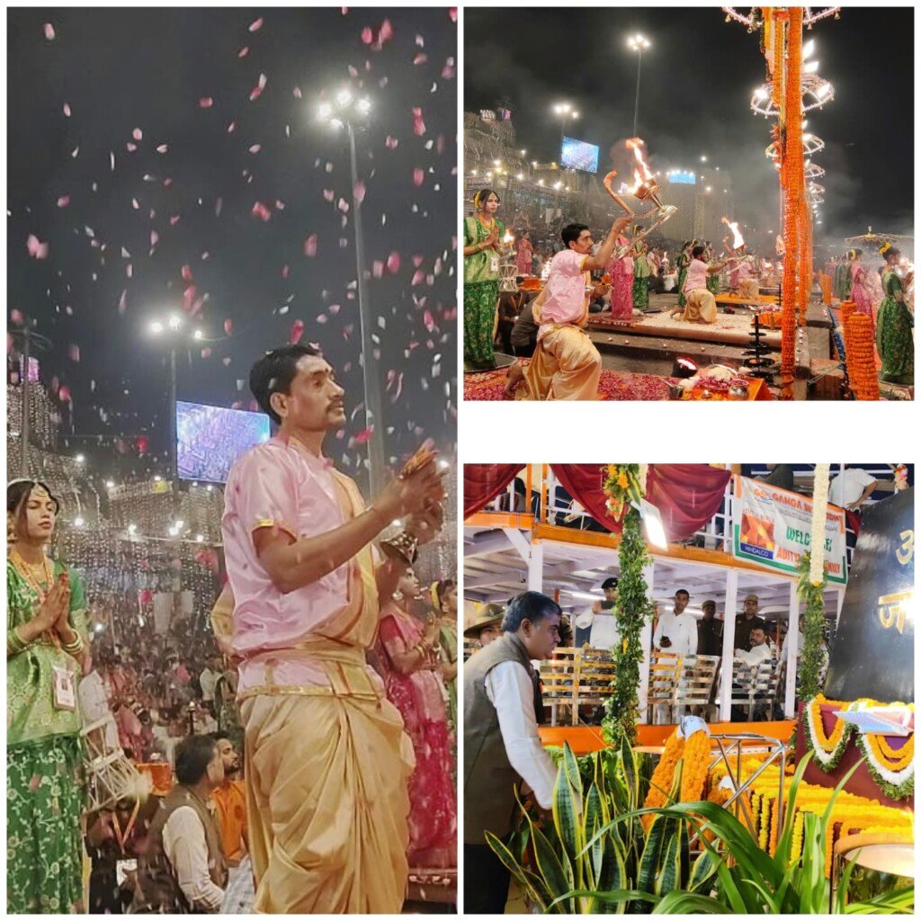कार्यक्रम का शुभारंभ प्रख्यात गायिका डॉ. रेवती साकलकर एवं उनके सहयोगी तबला वादक द्वारा भजन-संगीत और राष्ट्रगीत की प्रस्तुति से हुआ। इसके पश्चात बनारस घराने के प्रसिद्ध कलाकार माता प्रसाद मिश्र और उनकी टीम ने मां गंगा स्तुति और शिव तांडव स्तोत्र की भव्य प्रस्तुति देकर वातावरण को दिव्यता से भर दिया। इस अवसर पर देशभर से कई संत-महात्मा और गणमान्य अतिथि उपस्थित रहे, जिनमें स्वामी पूर्णन्या नंद जी महाराज, स्वामी विरानंद जी महाराज, स्वामी महात्मा नंद जी महाराज (भारत सेवा श्रम संघ, वाराणसी व प्रयागराज), ब्रिगेडियर जयदीप चंदा (39 जीटीसी), एयर कमाडोर कुणाल काला (4 वायुसेना प्रवर्तन बोर्ड), कमांडेंट राजेश्वर बालापुरकर (95वीं बटालियन, सीआरपीएफ), कमांडेंट सुचिता सिंह (सीआईएसएफ, वाराणसी), आईजी अनिल मिश्र (सीआरपीएफ, वाराणसी), द्वितीय कमान अधिकारी संतोष कुमार (11वीं वाहिनी, एनडीआरएफ), इंस्पेक्टर भुनेश्वरी (आरपीएफ, एनईआर, वाराणसी सिटी), बीजेपी से महेशचंद्र श्रीवास्तव, आदित्य बिड़ला ग्रुप से जयश्री मेहता, हिंडाल्को इंडस्ट्रीज लिमिटेड, रेनुकूट, सोनभद्र से जसबीर सिंह प्रमुख रूप से शामिल रहे। ऑपरेशन सिंदूर को समर्पित रही मां गंगा की महाआरती, 51 हजार दीपों की आभा से जगमगाया दशाश्वमेध घाट, आध्यात्म और राष्ट्रभक्ति का दिखा संगम गंगा सेवा निधि के अध्यक्ष सुशांत मिश्र ने सभी अतिथियों, श्रद्धालुओं और सहयोगियों का स्वागत भाषण देते हुए कहा कि “देव दीपावली केवल दीपों का पर्व नहीं, बल्कि यह हमारे देश की सांस्कृतिक आत्मा और राष्ट्रभक्ति की चेतना का प्रतीक है।”