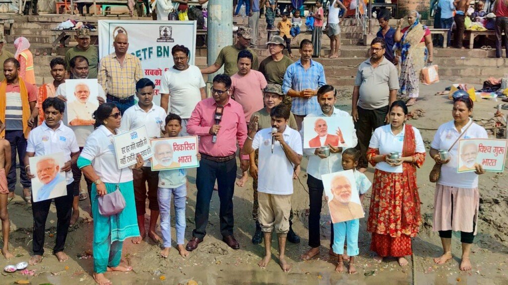 राजघाट पर नमामि गंगे गंगा विचार मंच महानगर व 39 गंगा टास्क फोर्स के संयुक्त तत्वावधान में बुधवार को पीएम मोदी के दीर्घायु- शतायु व आरोग्य सुख की कामना से मां गंगा का दुग्धाभिषेक कर संगीतमय आरती उतारी गयी।हर हर महादेव शंभु काशी विश्वनाथ गंगे का सस्वर गायन कर प्रार्थना किया।
