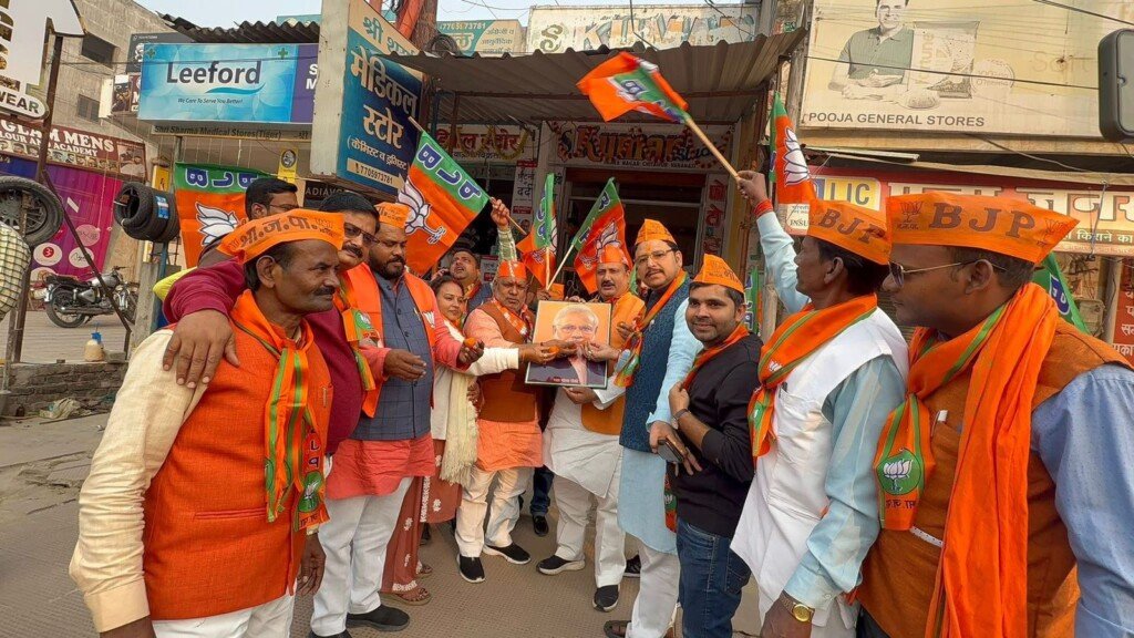 रोहनिया।बिहार विधानसभा चुनाव में भाजपा को प्रचंड बहुमत से जीत हासिल करने पर एमएलएसी कैम्प कार्यालय कंचनपुर में विधान परिषद सदस्य एवं भाजपा जिलाध्यक्ष हंसराज विश्वकर्मा के नेतृत्व में भाजपा के सैकड़ो कार्यकर्ता व पदाधिकारी के साथ विजय जुलूस निकालकर साथ ही साथ एक-दूसरे को मिठाई खिलाकर जीत का जश्न मनाया। जिसमे एमएलसी एवं भाजपा जिलाध्यक्ष हंसराज विश्वकर्मा, पूर्व विधायक सुरेंद्र नारायण सिंह, संजय सोनकर, दिनेश मौर्य, ब्लॉक प्रमुख प्रतिनिधि प्रवेश पटेल, विनोद सोनकर, गोबिंद दास गुप्ता, अनिल पांडेय, श्यामसुंदर विश्वकर्मा, रामसिंह ,कल्लू यादव, गोपाल पटेल, सुरेश पटेल गुड्डू, जय प्रकाश पटेल, जितेंद्र केशरी ,ओमप्रकाश प्रियदर्शी, यूसुफ ख़ान, मनीष कालरा ,अनिल कनौजिया, आशुतोष चौबे, केशव यादव ,उमेश विश्वकर्मा, अजय बिंद, राजेश विश्वकर्मा ,अजय सोनकर, आनंद पटेल, राजू प्रजापति, अजय विश्वकर्मा आदि लोग मौजूद रहे।