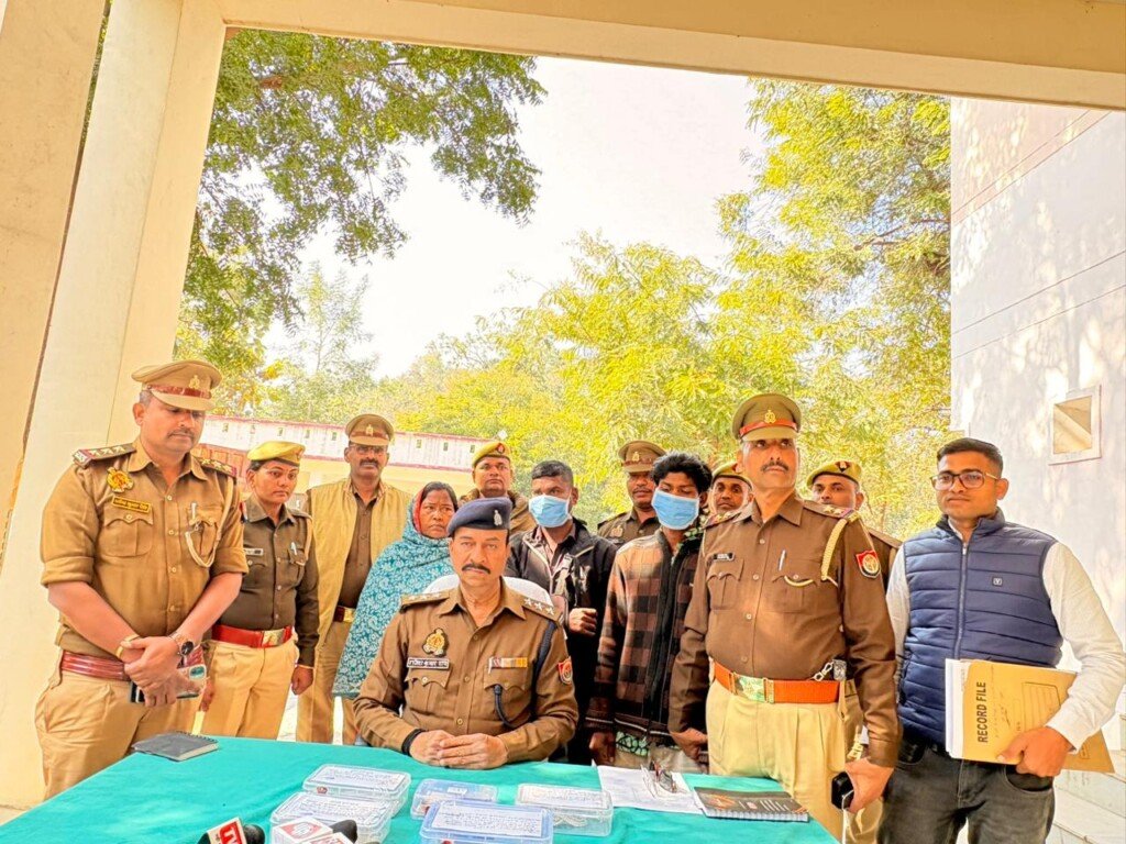 दुद्धी। बीते माह पहले स्थानीय कस्बा में हुई अलग-अलग घटनाओं में चोरी को लेकर पुलिस की नींद हराम हो गई थी। वादकारी लगातार पुलिस अधीक्षक सहित अन्य जगहों पर शिकायत कर रहे थे। एसपी सोनभद्र ने हाल ही में दुद्धी कोतवाल धर्मेंद्र कुमार सिंह को बड़ी जिम्मेदारी के साथ दुद्धी भेजा है। कोतवाल धर्मेंद्र सिंह ने बहुत कम समय में झारखंड से चोरों को गिरफ्तार कर खुलासा करने में सफल हो गए। सीओ दुद्धी ने कोतवाली दुद्धी में प्रेस कॉन्फ्रेंस कर बताया कि बुधवार की तड़के भोर में करीब चार बजे संदिग्ध परिस्थितियों में कोतवाली क्षेत्र के खजुरी गांव में चेकिंग कर रहा था। उसी दौरान खास मुखबिर की सूचना मिली कि कनहर नदी के पास दाह संस्कार घाट पर जाने वाले रास्ते पर खडे होकर कही जाने किसी वाहन का इंतजार कर रहे है। कही भागने की फिराक में है। घटना की जानकारी मिलते ही कोतवाली पुलिस की टीम ने मौजूद दो व्यक्ति एक महिला सभी घबराकर ईधर-उधर भागने का प्रयास किये तभी पुलिस ने कड़ी मशक्कत कर पकड़ लिया। पकड़े गये लोगों से पूछताछ करने के दौरान फालतू जबाब देते हुए ताल रहे थे। पुलिस ने सख्त तेवर के साथ पूछताछ की तो बताया कि राजा कुमार 24 पुत्र राजू राम, निशा देवी पत्नी राजू राम निवासी वार्ड न0. 01 स्वीपर बस्ती थाना दुद्धी एवं शम्भू राम 40 पुत्र बुद्दन राम निवासी डोमटोली गढ़वा झारखण्ड बताएं। इन लोगों ने बताया कि 26 अक्टूबर शिव प्रसाद जायसवाल वार्ड नं 11 दुद्धी व 19 दिसम्बर 2025 को शिखा अलंकार ज्वेलर्स के दुकान से चोरी की घटना हुई थी। जिसकी विवेचना उ0नि0 जयशंकर राय, उ0नि0 हरिकेश आजाद द्वारा किया जा रहा है। चोरों के पास से एक अदद देशी तमंचा 315 बोर, एक अदद जिन्दा कारतूस 315 बोर, चोरी का नगदी 42,500/-रूपये, आभूषण सफेद धातू 19 जोड़ी पायल, बिछियी 29 जोड़ी, राखी 02 जोड़ी, बैरवा 03 जोड़ी बरामद हुई है। गिरफ्तार करने वाली टीम प्रभारी निरीक्षक धर्मेन्द्र कुमार सिंह, व0उ0नि0 कुँवर सिंह, उ0नि0 हरिकेश राम आजाद, उ0नि0 श्री जयशंकर राय चौकी प्रभारी अमवार, उ0नि0 श्यामजी यादव, हे0का0 सर्वेश सिंह, लक्ष्मण सिंह यादव, खालिद खान, महताब अहमद, भागीचन्द्र यादव, का0 आनन्द यादव, विनोद सरोज, म0का0 संध्या यादव थाना दुद्धी रहे।