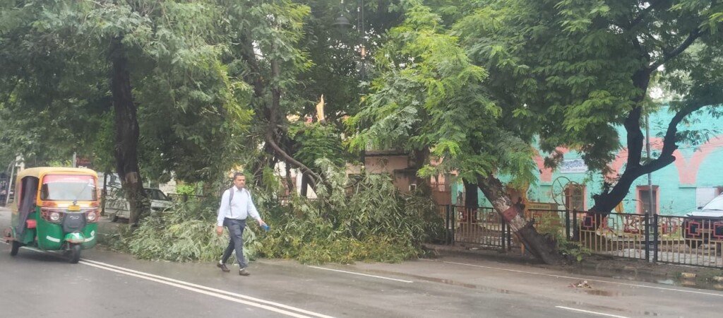 सारनाथ, वाराणसी। आशापुर-सारनाथ मार्ग पर बीती रात तेज बारिश के कारण आम का एक विशाल पेड़ मुख्य सड़क पर गिर गया, जिससे इस व्यस्त मार्ग पर यातायात पूरी तरह बाधित हो गया है। वहीं, कुछ ही दूरी पर एक अन्य पेड़ भी तेज बारिश के चलते गिर पड़ा है।